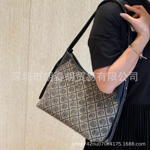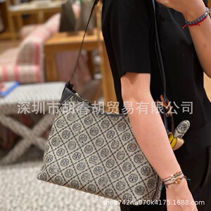 原单TB新款老花hobo流浪包单肩腋下牛角包时尚百搭斜跨托特旅行包