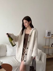 濮院羊毛衫工厂老钱风韩版开衫外套连帽宽松毛衣大衣秋冬新款女装