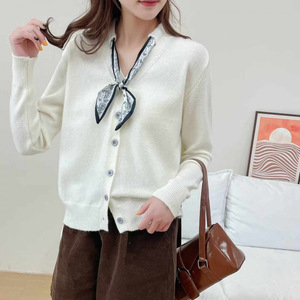 韩系慵懒风丝巾装饰开衫女早秋新款温柔风减龄宽松软糯针织外套潮