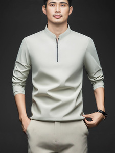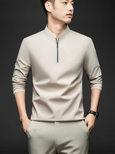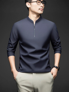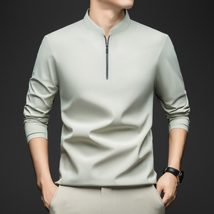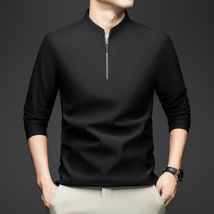 春秋季男士中年长袖T恤锦氨半拉链立领纯色体恤衫休闲上衣服 男装