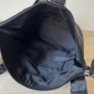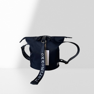 芬兰小众M家包男女时尚轻便印花字母肩带尼龙布小斜挎包水桶包