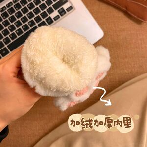 可爱小熊手套女生冬季翻盖露指学生骑行加厚保暖防寒熊掌毛绒手套