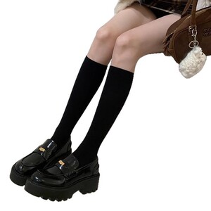 现货秒发!葡萄妈同款小金币圆头皮鞋粗跟厚底单鞋一脚蹬乐福鞋女