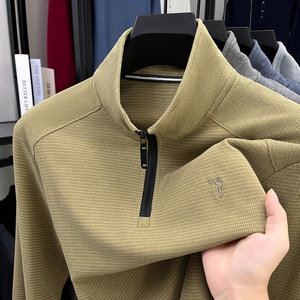 保罗长袖卫衣男春秋新款中年男士立领休闲高档男装帅气桑蚕丝上衣