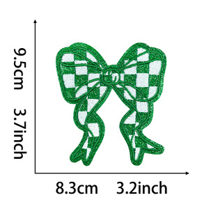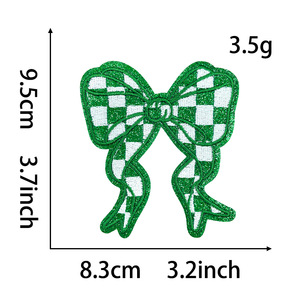 加热熔胶*平绣-金皮绿色格子蝴蝶结