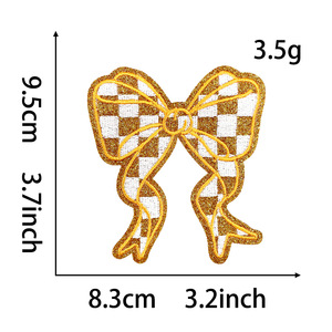 加热熔胶*平绣-金皮黄色格子蝴蝶结