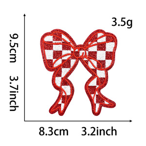 加热熔胶*平绣-金皮红色格子蝴蝶结