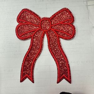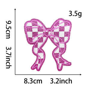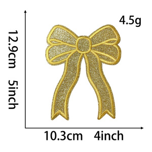 五色开叉蝴蝶结刺绣布贴 粉色蝴蝶结熨烫贴片 金皮发光蝴蝶结