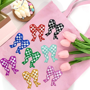 加热熔胶*平绣-金皮黑色格子蝴蝶结
