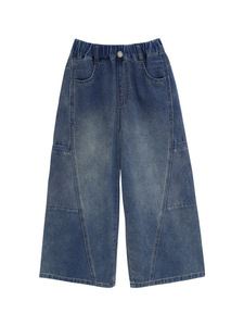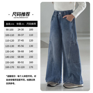 图图小象女童裤子2025春秋立体拼接有型宽松阔腿裤软牛仔裤亲子装