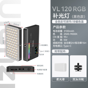Ulanzi优篮子VL120 RGB补光灯彩色口袋相机单反手持便携led摄影灯