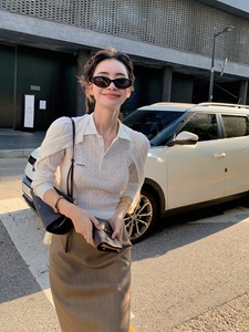 通勤系列 紫标羊毛绞花套装女早秋针织开衫+POLO衫两件套