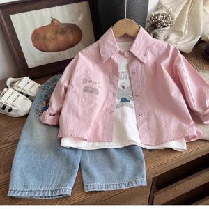 儿童新品春装印花翻领长袖百搭棉衬衫男女童帅气衬衣儿童薄款上衣