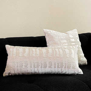 现代简约米白色浮雕割绒抱枕靠垫 轻奢酒店样板间沙发方枕长腰枕