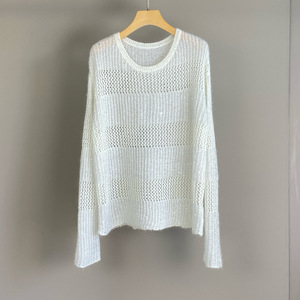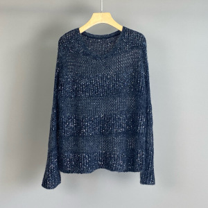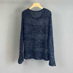 2025早秋季新款慵懒风宽松BC亮片镂空针织毛衣圆领女秋冬感毛衣