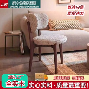 白蜡木家用复古轻奢设计师靠背椅现代简约餐椅咖啡厅餐厅化妆椅