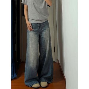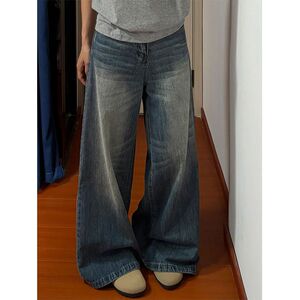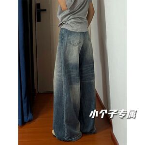 145小个子美式高街复古水洗阔腿牛仔裤女高腰显瘦宽松直筒拖地裤