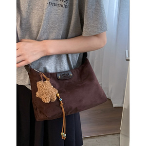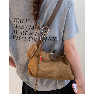 批发秋季复古小众腋下包包女2025新款时尚麂皮绒水桶包简约单肩包
