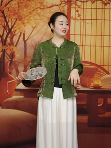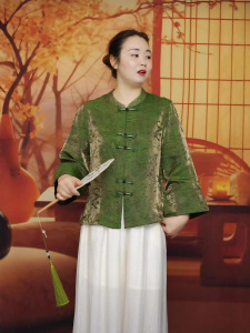 2025新款复古浮光锦上衣外套气质盘扣提花国风新中式轻奢开衫