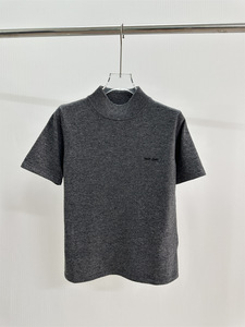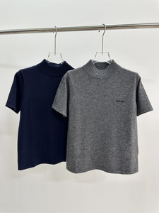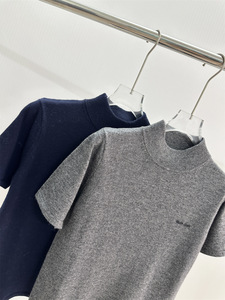 高品质2025早秋新款miu家提花字母圆领针织短袖T恤纯色修身女