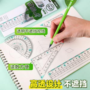 硬尺20cm4件套尺卡扣袋装考试尺子套裝直尺格尺三角板量角器批发
