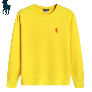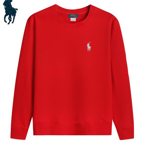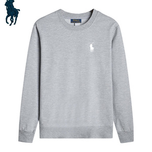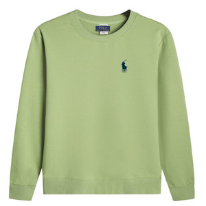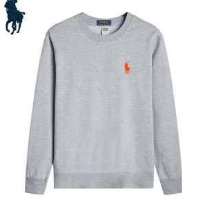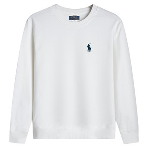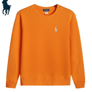 跨境新款300克秋纯色品质刺绣小马纯棉卫衣长袖t恤圆领落肩打底衫