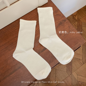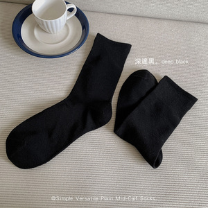 纯色系基础款百搭简约袜子女羊毛混纺保暖透气高螺口基础中筒袜