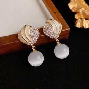 法式复古镶钻几何猫眼石耳坠女时尚轻奢百搭高级感高品质耳环批发