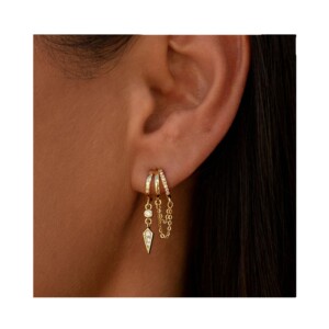 欧美跨境热销 黄铜真金电镀 个性小众高级感链条流苏耳圈女士耳饰