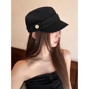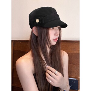 韩版复古纽扣鸭舌帽子女高品质2025新款日系小众复古棉质报童帽秋
