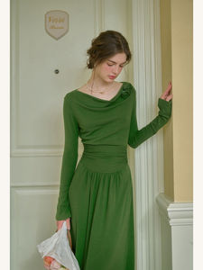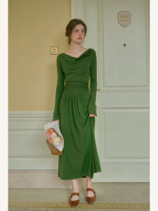 绿色荡领连衣裙