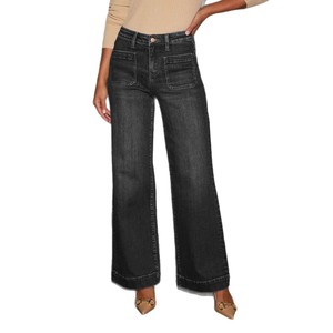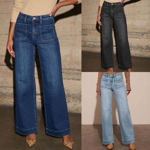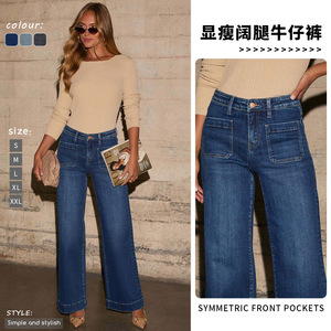 跨境欧美爆款2025春季高腰女款牛仔裤显瘦复古气质款阔腿时尚百搭