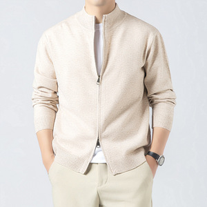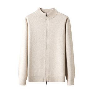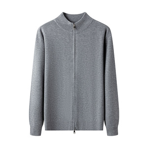 男士双拉链设计半高领针织衫长袖商务休闲纯色百搭春秋季毛衣