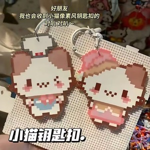 小猫像素卡通钥匙扣书包萌物可爱学生亚克力挂饰包包闺蜜挂件礼物