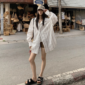 RHGD实拍2025 层叠设计复古慵懒感竖条宽松oversize百搭衬衫