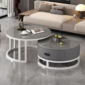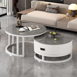 黑架灰柜丨#雪山白+雪山白 、洛斯特【70+50茶几组合】9mm加厚亮光