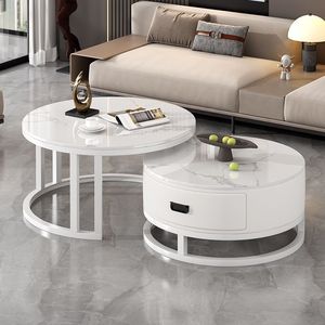 意式风圆形岩板高级茶桌小户型客厅家用爆款现代简约轻奢桌子组合