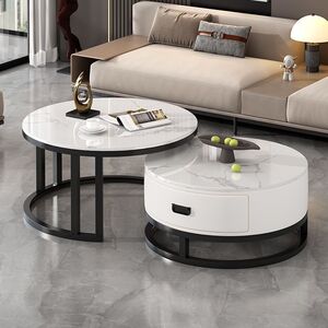 黑架白柜丨#雪山白+雪山白 、洛斯特【70+50茶几组合】9mm加厚亮光