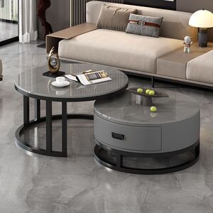 黑架白柜丨#阿玛尼灰+阿玛尼灰 、洛斯特【70+50茶几组合】9mm加厚亮光