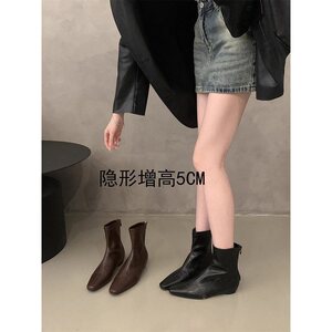 短靴女方头靴简约内增高2025短筒靴后拉链秋冬季时装靴新款韩版女