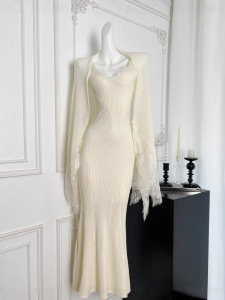 『欣幸』从一时刻归国白月光新中式蕾丝拼接披肩吊带连衣裙套装