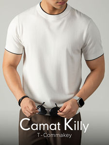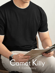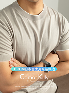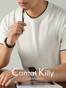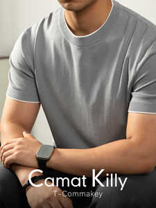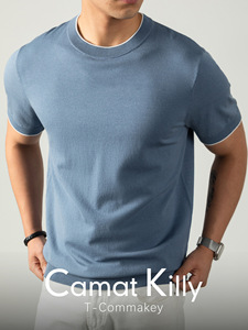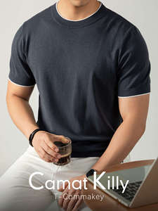 「桑蚕丝&莱赛尔」老钱风针织衫短袖T恤男士16针撞色设计感毛衫T