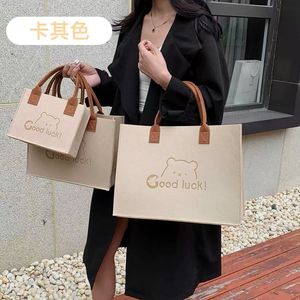 新款拼接毛毡包手提袋企业定制伴手礼袋简约大容量毛毡托特包批发