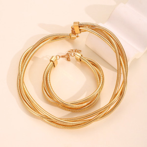 欧美跨境三线缠绕弹簧项圈手镯轻奢高级感金属朋克嘻哈项链手链