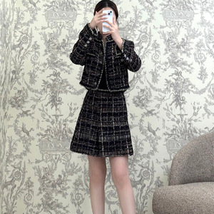 25秋季新款南油高定Cha简约休闲圆领单排扣小香风外套半裙套装