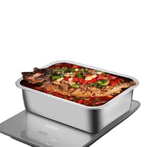 304不锈钢方盆长方形方盘自助餐份数盆加深托盘快餐菜盆带盖方盒