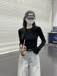 实拍实价 早秋韩版修身纯色鱼骨设计感百搭纯棉长袖打底T恤女上衣
