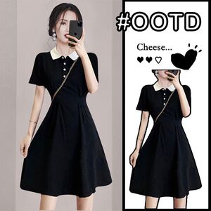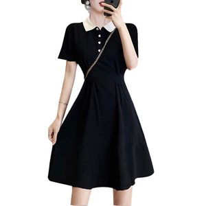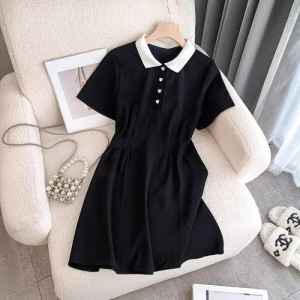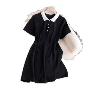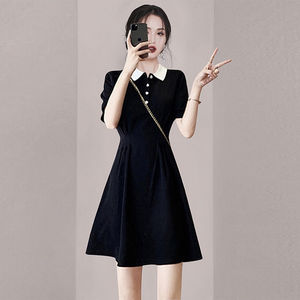 假两件POLO连衣裙女夏季新款法式学生气质显瘦裙子赫本褶皱小黑裙