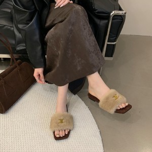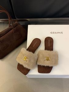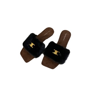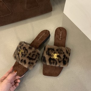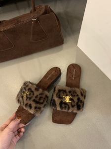 网红豹纹毛毛拖鞋女外穿2025秋冬新款毛茸茸平底一字拖居家棉拖鞋