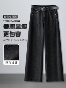阔腿牛仔裤女2025新款垂感高腰窄版直筒裤宽松显瘦印花休闲裤百搭